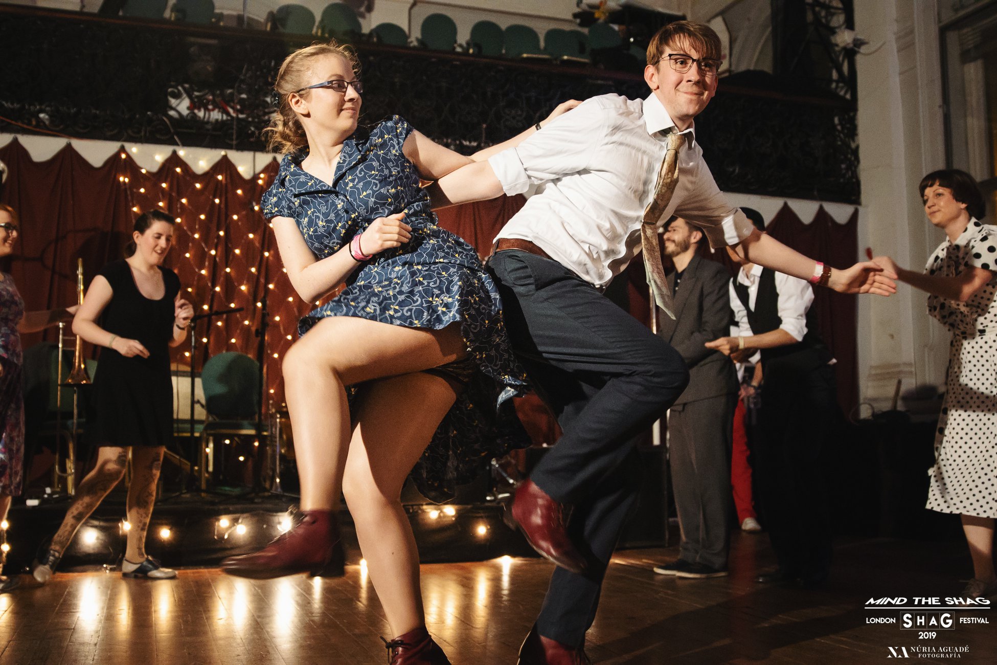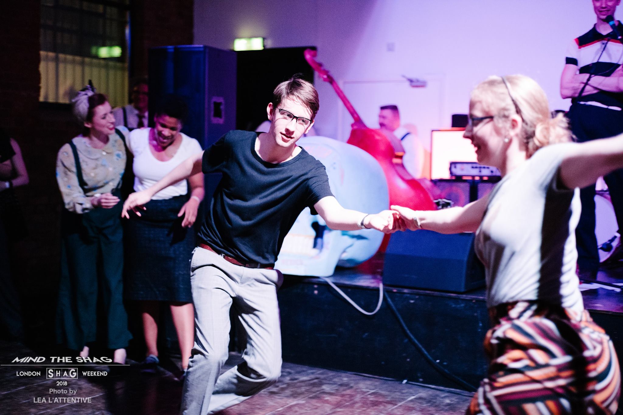 Rebecca has loved dancing from an early age and can’t stop grooving if there’s a good beat going. After a few years without dancing she started lindy hopping at university after trying to find an open welcoming dance class, to get those feet moving again! Once her partner Adam discovered Collegiate Shag she got swept along by his enthusiasm and quickly fell in love with it too. Rebecca loves to sprinkle her classes with joy and grooviness, along with a good pinch of technique, and (like Adam) is particularly keen on encouraging more people to dance both Collegiate and St Louis Shag.